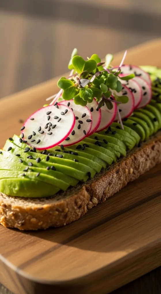 1. Spread mashed avocado on toasted bread.