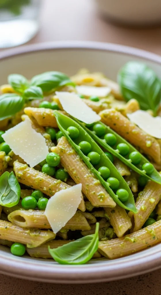 3. Toss pasta with pesto and peas; season to taste.