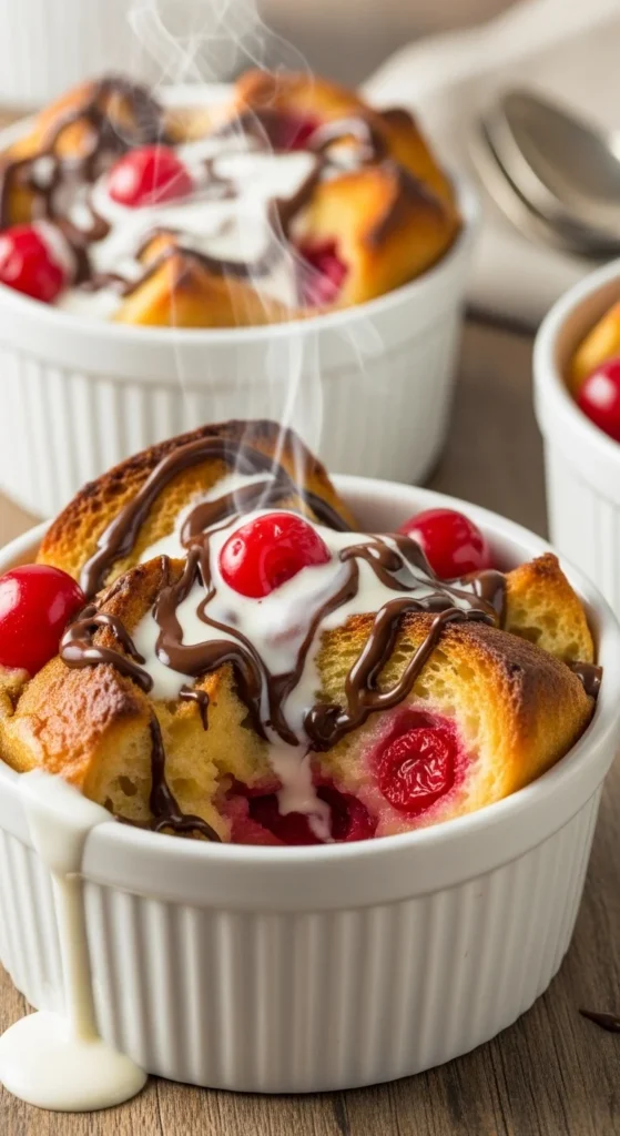 Drizzle with chocolate sauce and serve warm with ice cream.