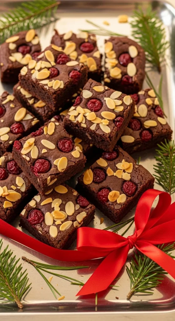 Fruity and nutty flavors bring an elegant Christmas touch to classic brownies.
