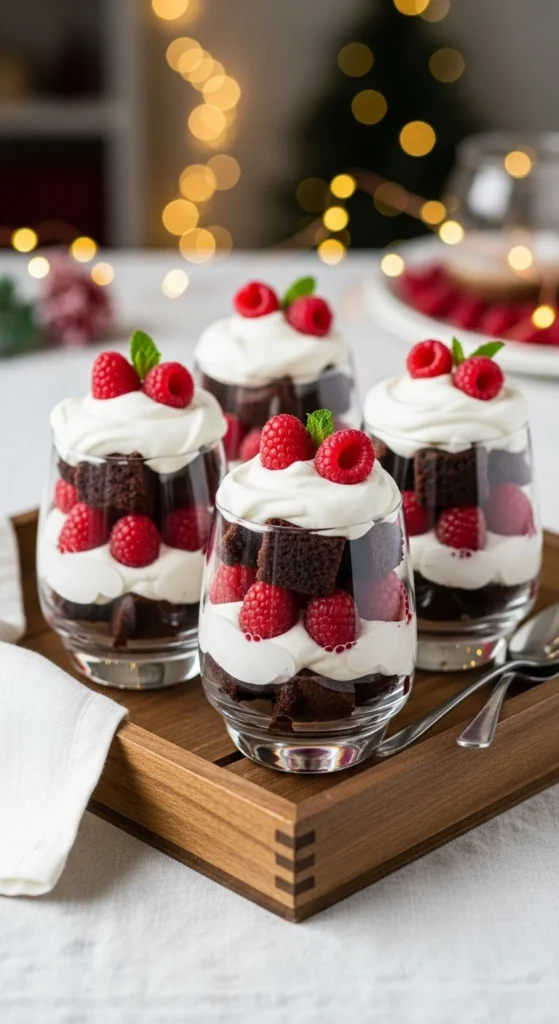 1. In small glasses, layer brownies, whipped cream, and raspberries.