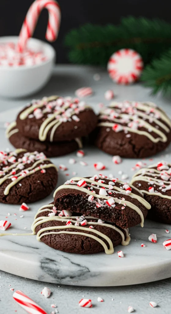 Drizzle melted white chocolate and sprinkle extra candy cane bits.