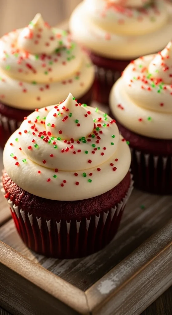Rich, velvety, and festive red — these cupcakes are a timeless Christmas favorite.