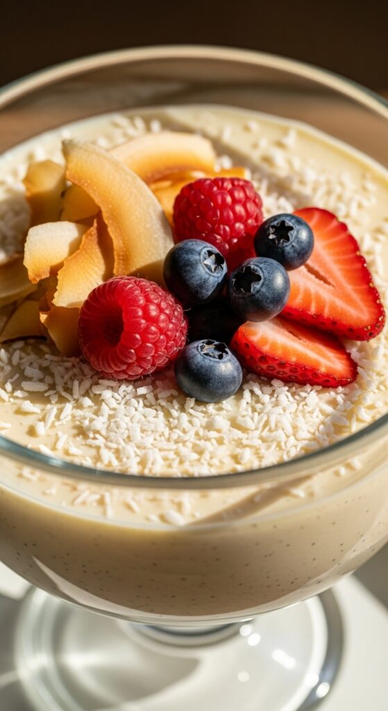 Sweet, creamy, and tart all in one — this pudding feels festive and modern.
