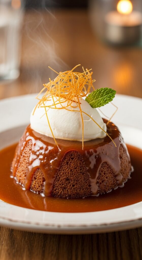 Rich and sweet, this pudding blends dates and brown sugar for a moist, toffee-flavored treat that’s irresistible.