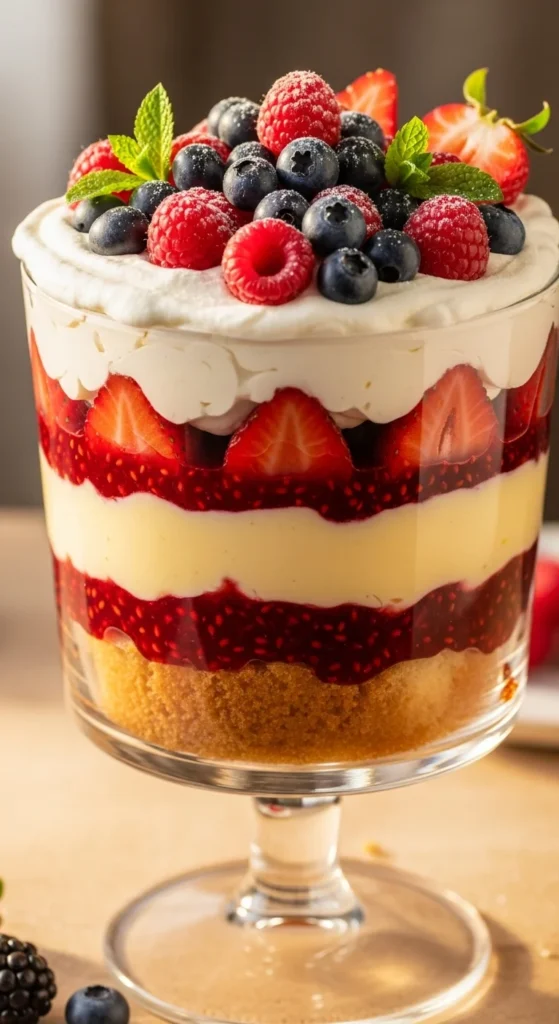 This traditional English trifle brings nostalgia and beauty to every spoonful.