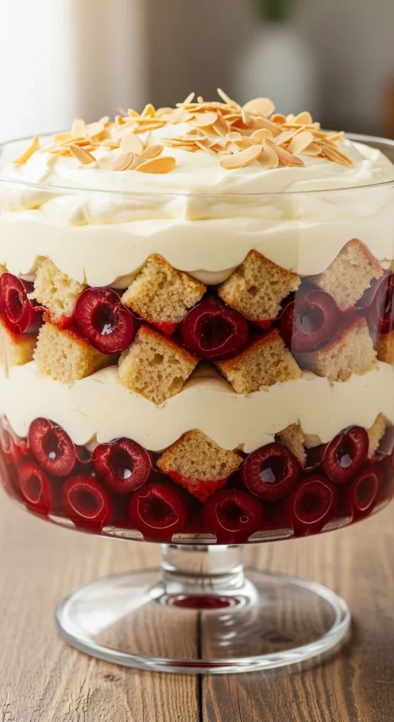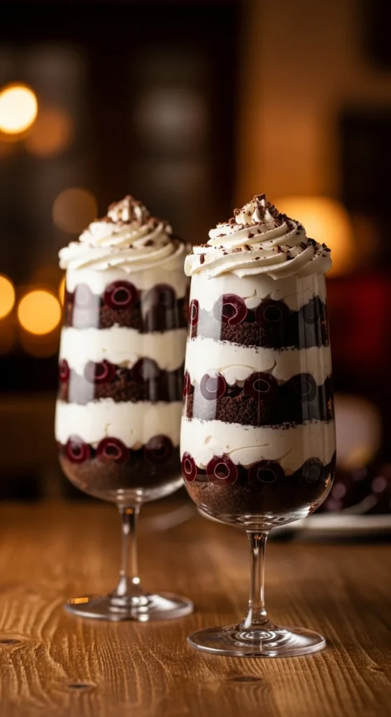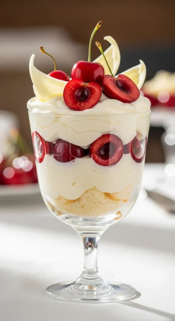 A snowy spin on the Black Forest trifle — light, creamy, and festive.