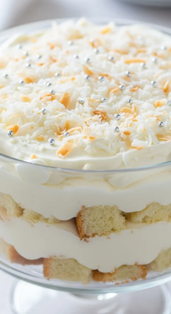 This tropical-inspired trifle brings a snowy elegance to your Christmas table.