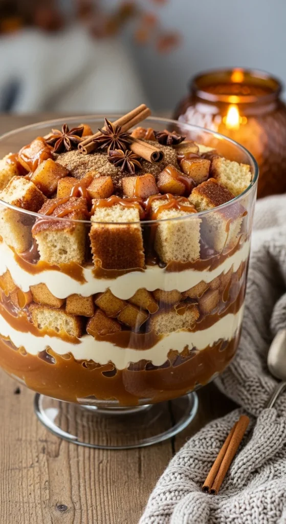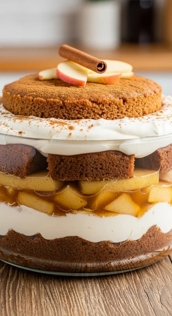 - A comforting blend of apple pie flavors and soft creamy layers.