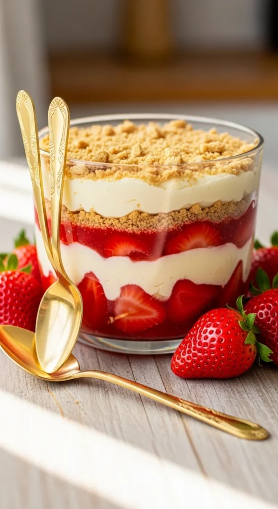This trifle blends creamy cheesecake flavor with bright strawberry sweetness.