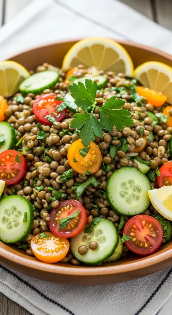 A plant-based protein salad with creamy texture and citrus freshness.
