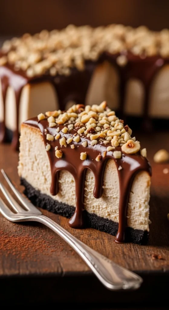 Chocolate hazelnut spread gives this cheesecake deep flavor.