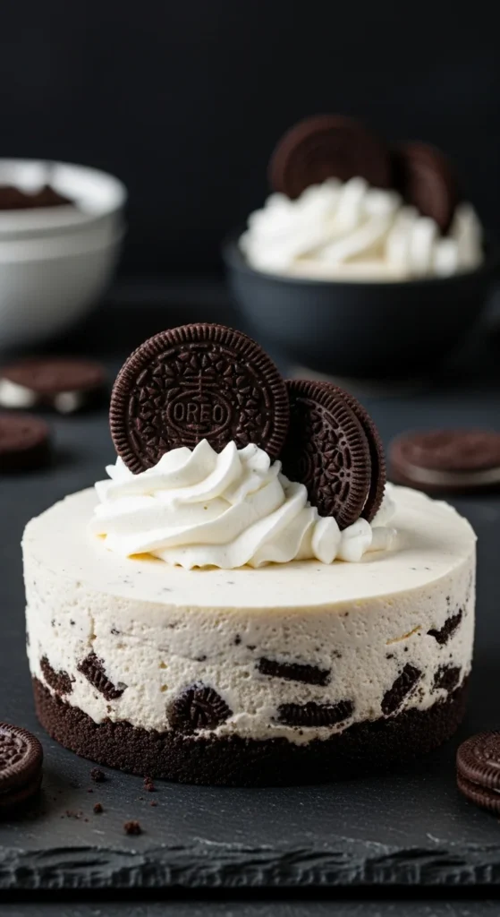 Cookies and cream fans will enjoy this creamy cheesecake packed with crunchy cookie bits.