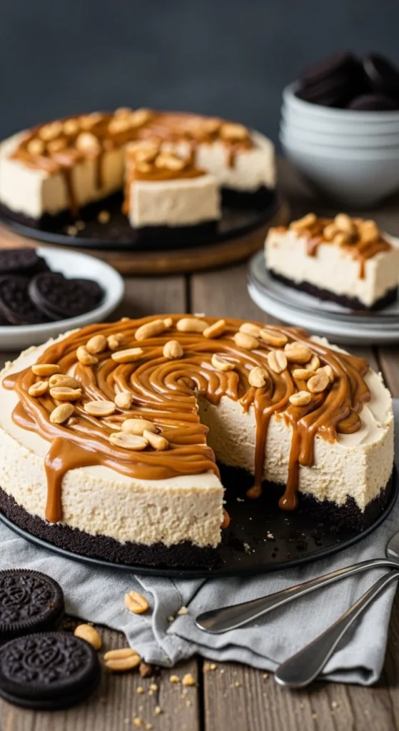 Peanut butter gives this cheesecake a rich and nutty taste.