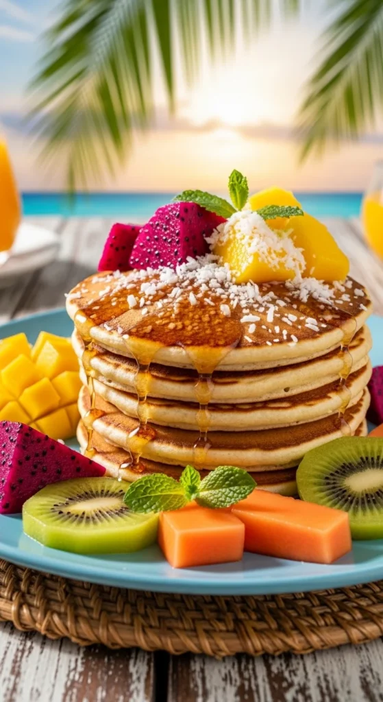 Light coconut flavor gives these pancakes a tropical feel.