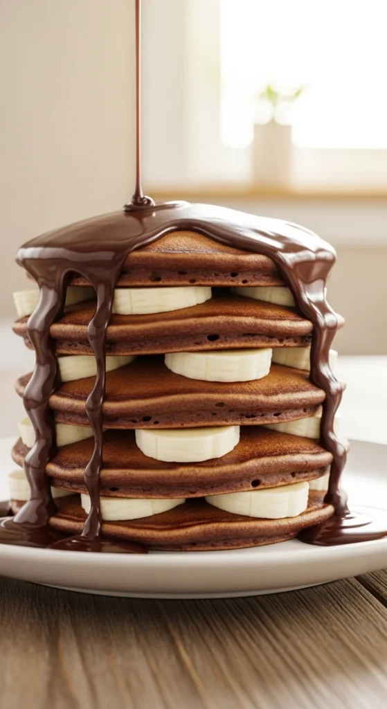 Chocolate and banana are a classic pair that makes these pancakes rich and comforting.