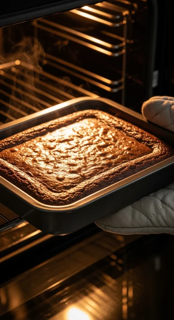 Pour your batter into a greased or parchment-lined 8×8-inch pan. Bake at 350°F (175°C) for 25–30 minutes.