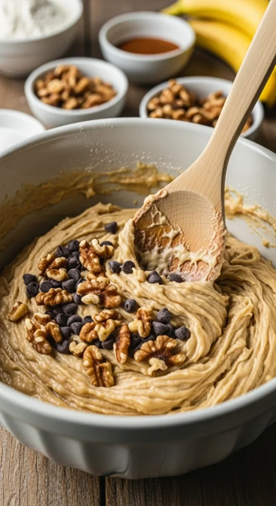 This step is where the magic begins — the melted butter and banana create that rich, moist texture everyone loves.
