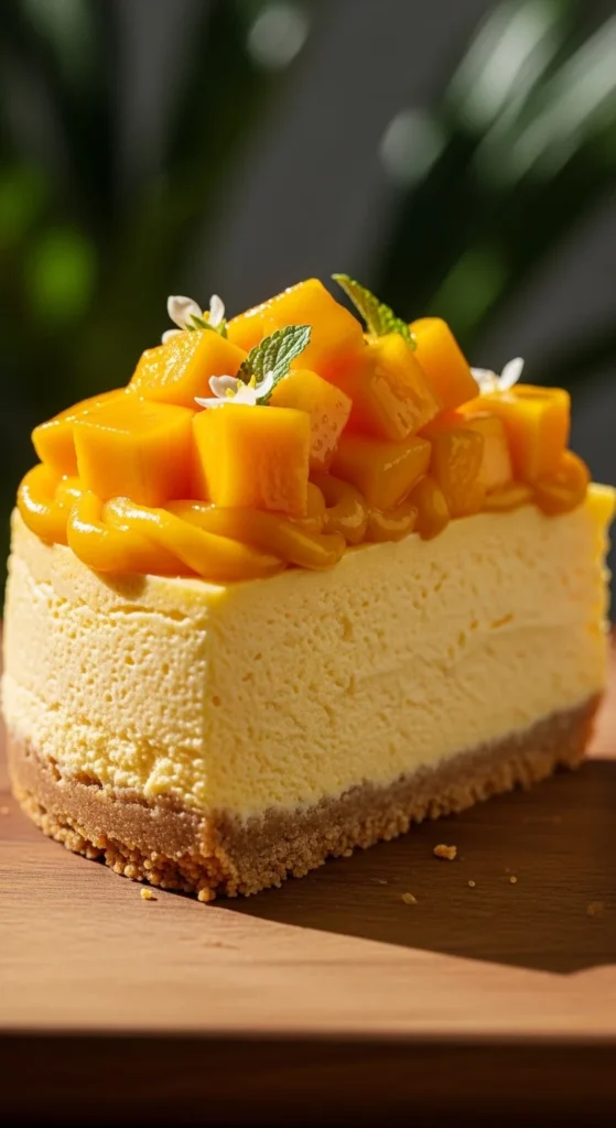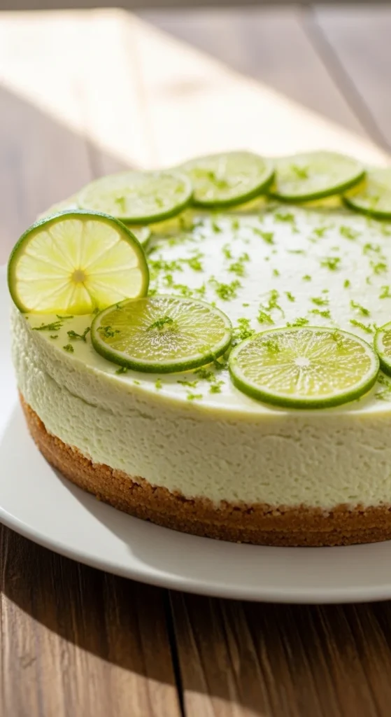 This cheesecake has a refreshing citrus flavor that tastes light and creamy.