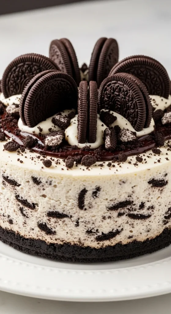 Crunchy cookie pieces mixed with creamy cheesecake create a fun dessert.