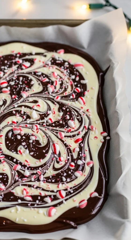 - Place on parchment paper and sprinkle with crushed candy canes.