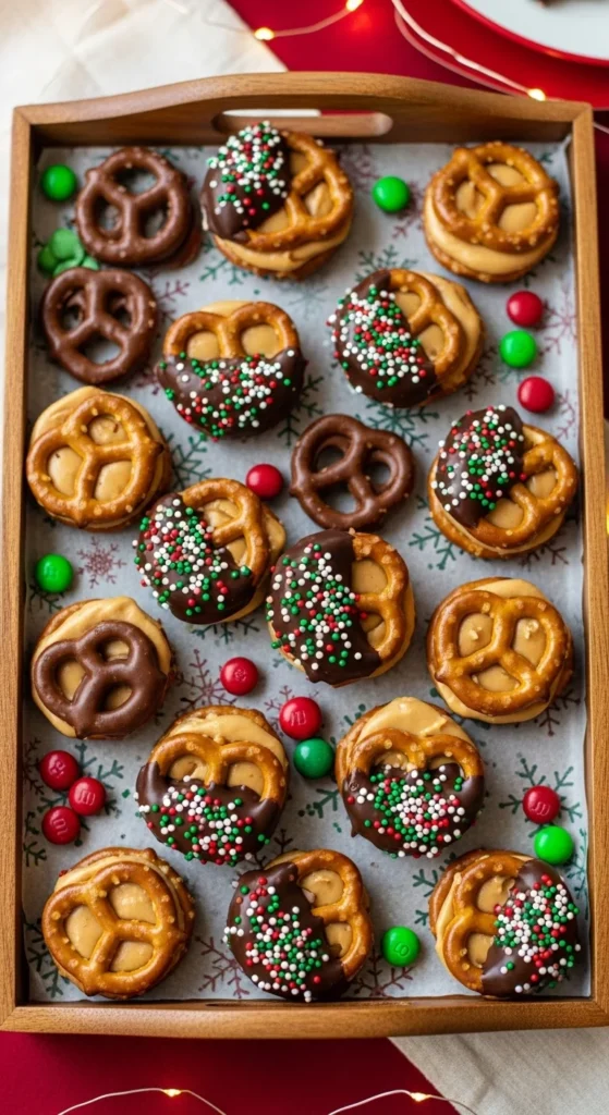 These easy chocolate-covered sandwich cookies are the perfect mix of salty, sweet, and festive crunch.