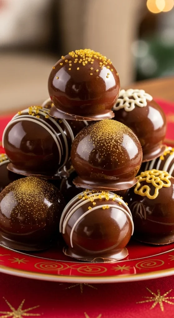 Add edible glitter or drizzle white chocolate for a holiday touch.