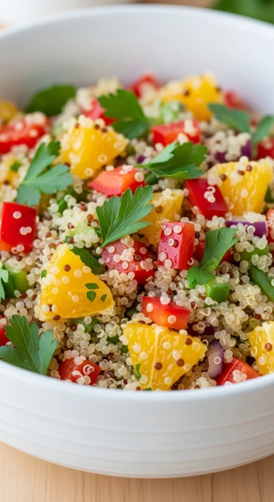 Refreshing salad with citrusy notes and protein-packed quinoa.