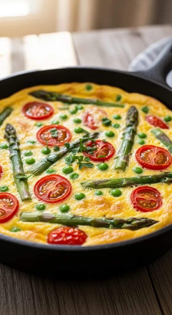 This frittata bursts with spring vegetables, perfect for a light yet filling breakfast or brunch.