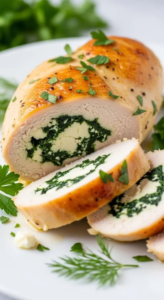 Tender chicken with a flavorful spinach and feta filling makes a light, elegant dinner.