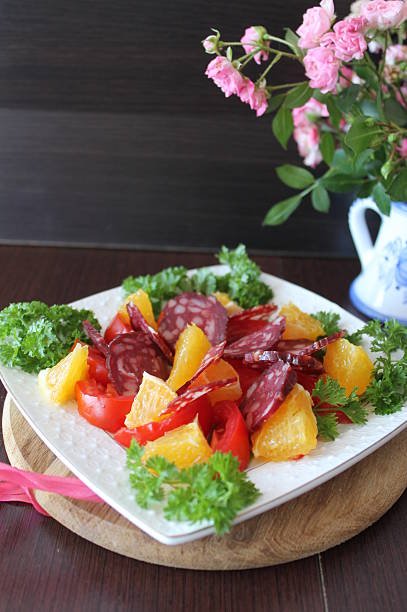 - Finely chop romaine, bell pepper, tomatoes, and green onions.