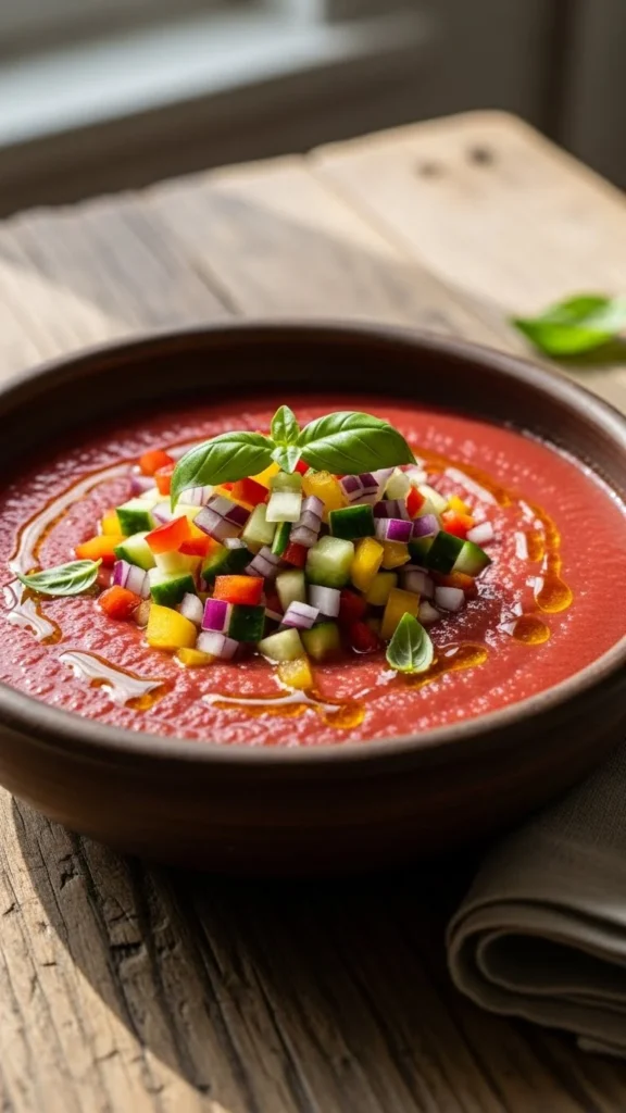 This chilled tomato soup is tangy, fresh, and perfect for warm afternoons.
