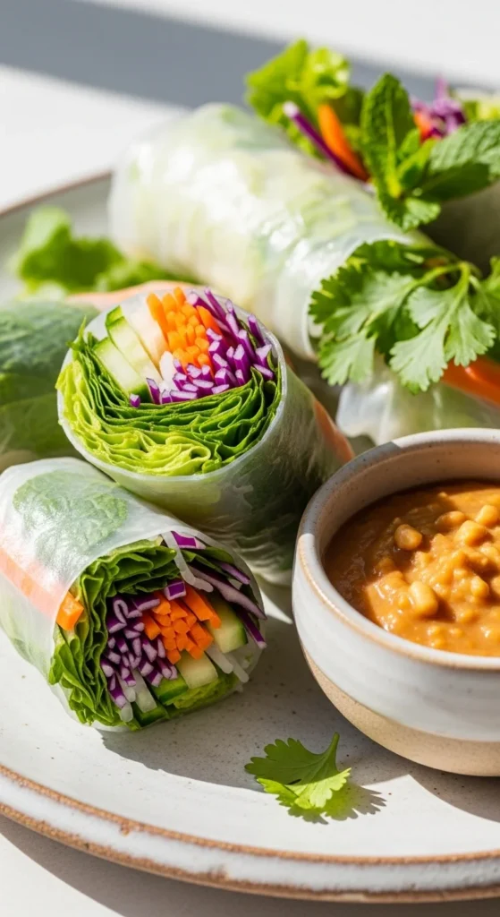 21. Spring Rolls with Peanut Dipping Sauce