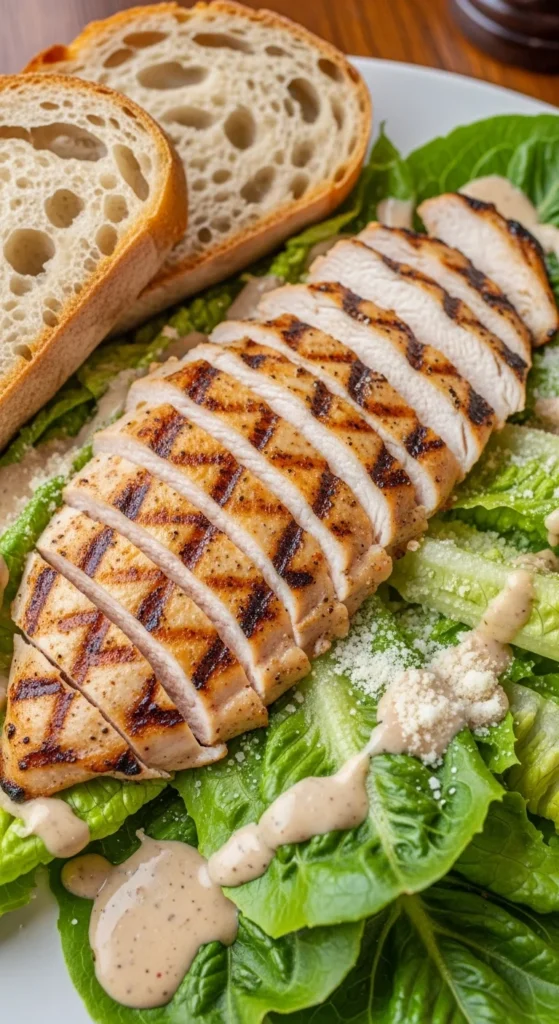 - ½ grilled chicken breast, sliced