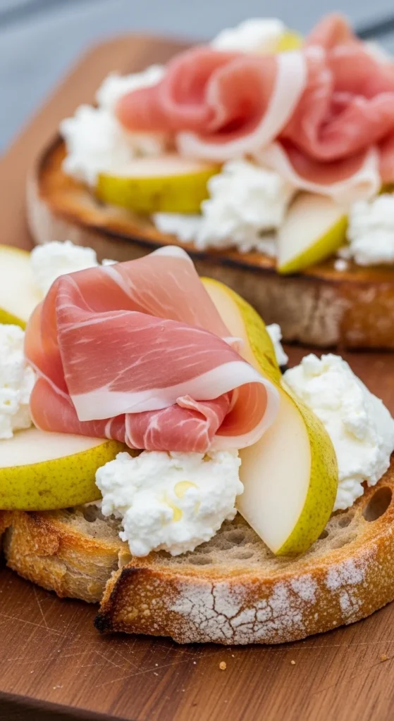 - Add pear and prosciutto.