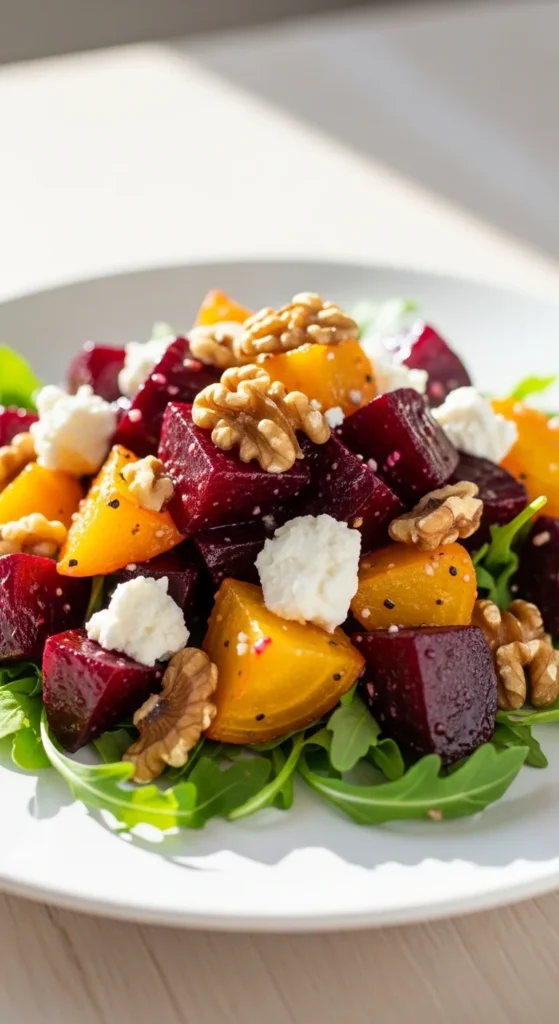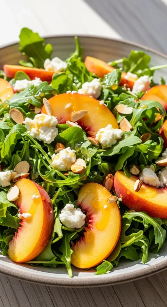 Sweet peaches paired with peppery arugula create a refreshing summer-inspired salad.