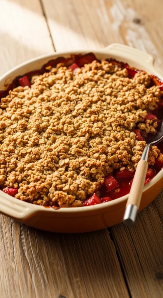 A tangy-sweet dessert with a crunchy oat topping, perfect for spring evenings.
