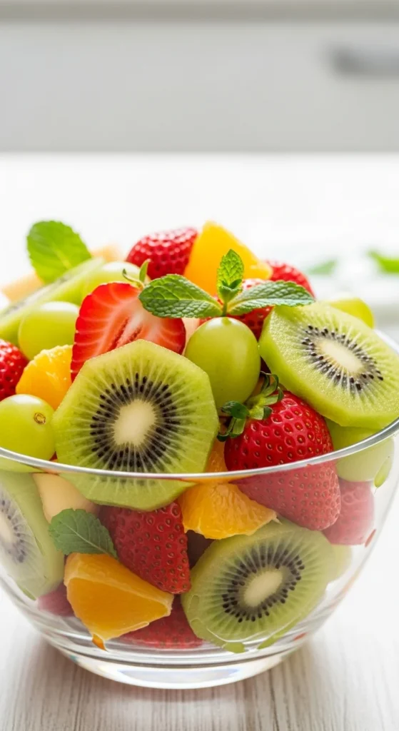 - Combine fruits in a bowl.