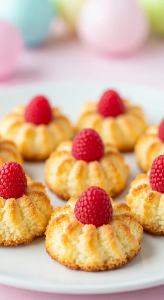 Chewy coconut treats with a burst of fresh raspberry.