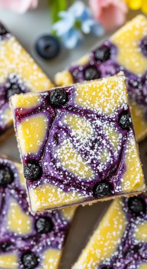 Tangy lemon bars with juicy blueberry swirls make a spring favorite.
