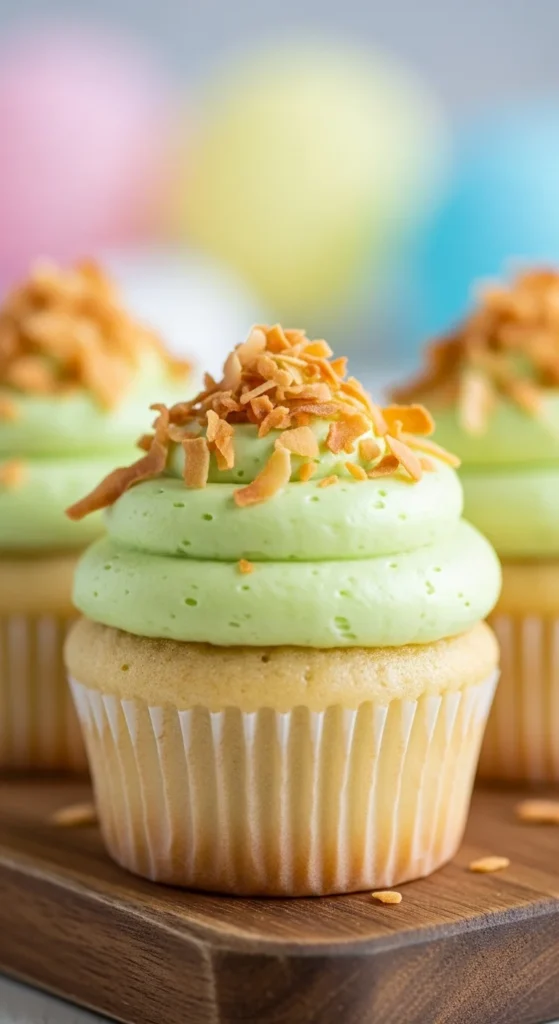 Soft cupcakes with zesty lime flavor and light coconut topping.