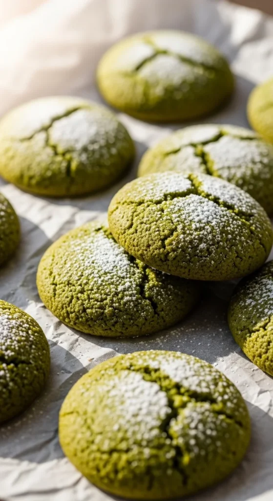Soft and slightly chewy cookies with a subtle earthy matcha flavor.