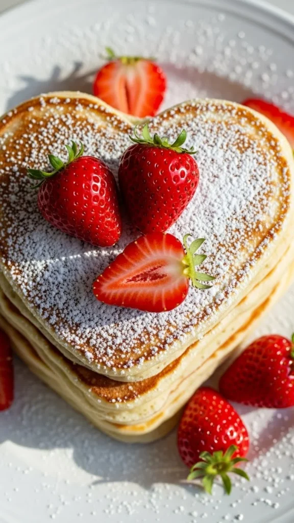 1. Heart-Shaped Strawberry Pancakes