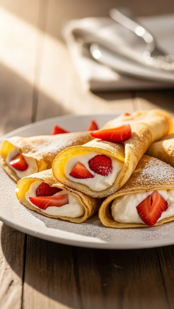 These soft, lightly sweet crepes pair beautifully with bright berries and creamy filling.