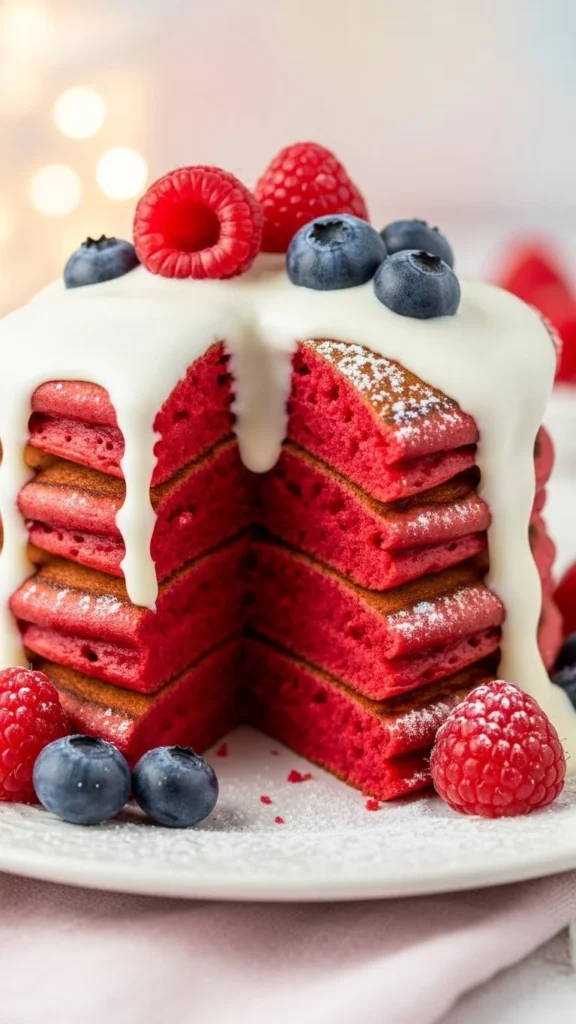 2. Heart-Shaped Red Velvet Pancakes