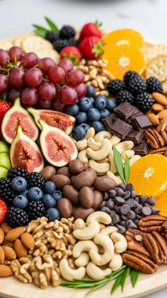 - Scatter figs, nuts, and chocolate.