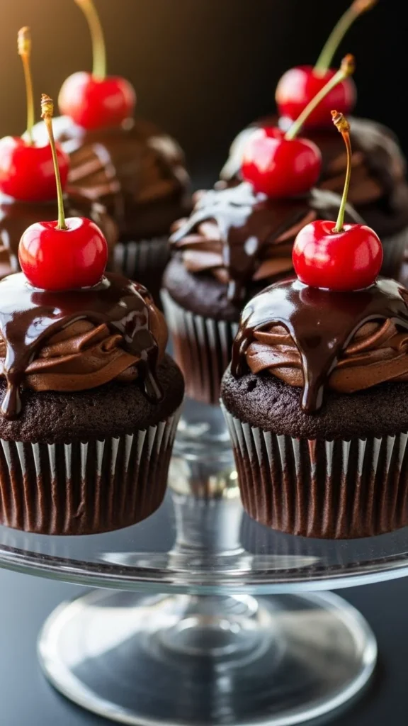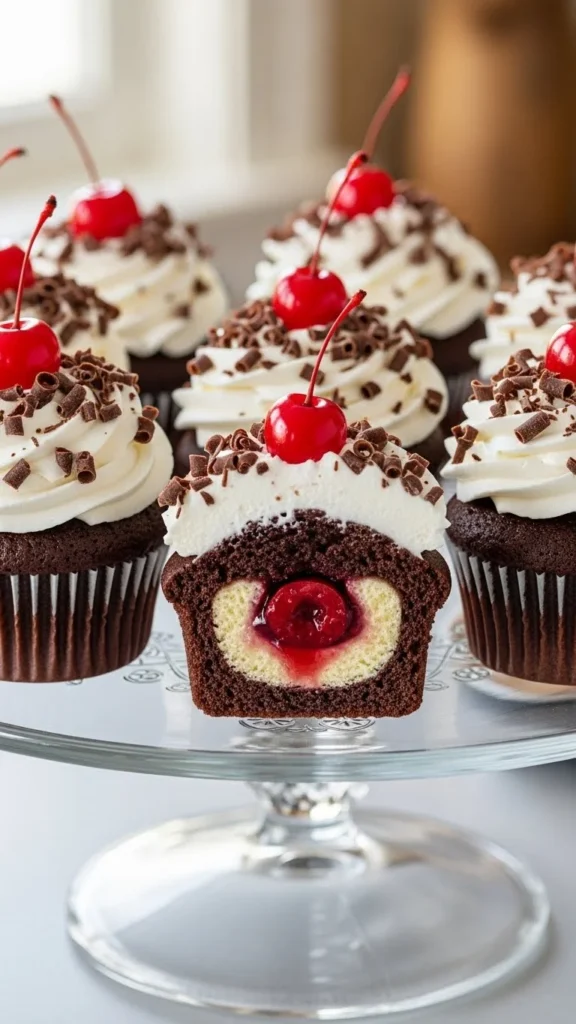 Inspired by the classic cake, these cupcakes have a chocolate base with sweet cherry filling.