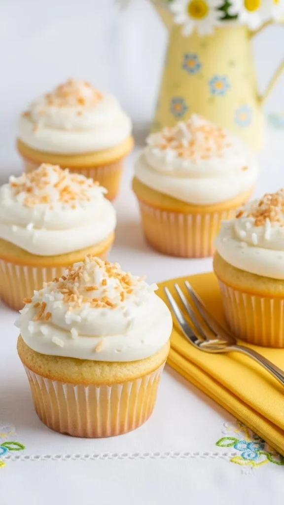 Soft coconut flavor paired with creamy frosting gives a tropical, sweet bite.