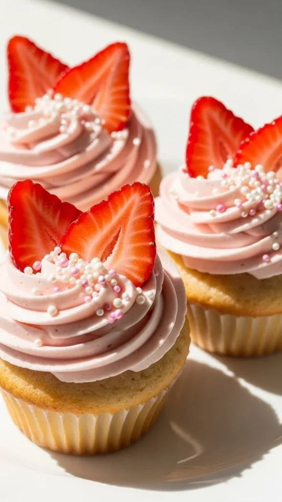These cupcakes capture the fresh, sweet flavor of strawberry shortcake in a single bite.