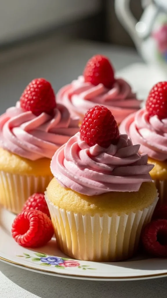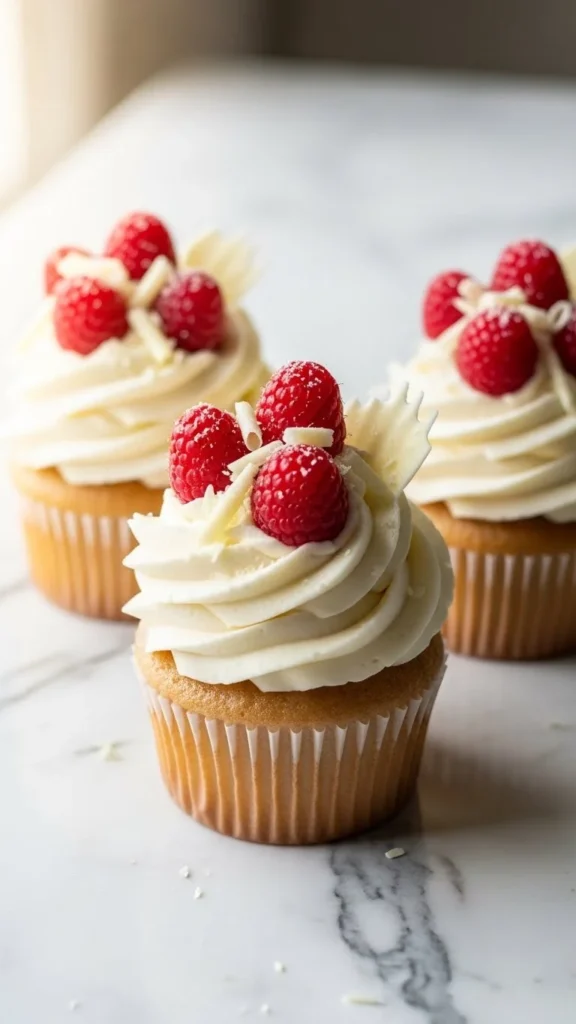 Top with frosting swirls and fresh raspberries for a beautiful finish.